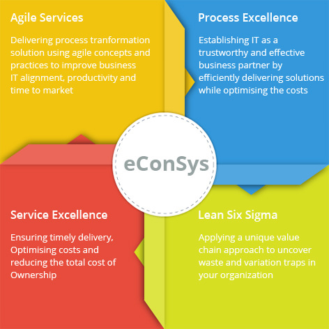Wizcom eConsys system focuses on transforming consulting services using a unified approach covering the array of processes involved – sourcing, service and operation. The variety of services includes assessments, strategic planning, process classification and execution, and incessant improvement, leveraging best practices, Trim principles and swift methodologies. Wizcom Inc powers its proprietary ready-to-use process structures and the Comprehensive Delivery Models to deliver augmented results, enriched productivity and reduced time-to-market.